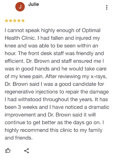 ** The testimonials presented on this site are individual experiences, reflecting real life experiences of those who have received the treatment presented here. However, they are individual results and results do vary. While the vast majority of our patients do experience reduced pain and improved physical condition from this treatment, we do not claim that every patient will experience these improved conditions. Additionally, these testimonials are not intended to make claims that these products can be used to diagnose, treat, cure, mitigate or prevent any disease. These claims have not been evaluated by the FDA.
